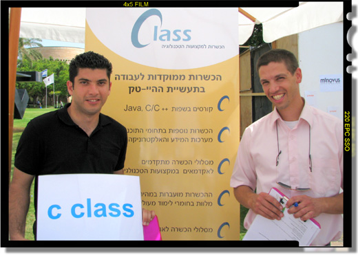 אורי זימרוני, מנהל מכון C CLASS, מספר מה הם מחפשים ביריד התעסוקה: "המכון מונה עשרה מרצים כרגע וכ- 100 תלמידים למחזור (קורס). אנו מחפשים אנשי הדרכה בתחומי התוכנה, בתחומי מערכות המידע, אנשי אלקטרוניקה. אנשי הדרכה מעולים ואיכותיים שמתמקצעים בשפות של ++C, JAVA ברמה גבוהה, אנשים שעבדו בתעשייה, שמכירים את עולם ההדרכה. אנשים מתחום האלקטרוניקה שיודעים להדריך את התחומיםVERiLOG/ VHDL ".